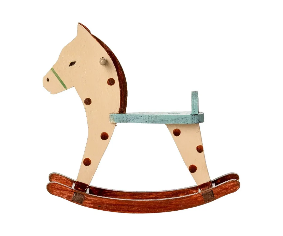 A tus ratones Maileg les encantará tener este original caballito balancín. Se adapta perfectamente a las tallas ratón hermano y heramana pequeños, cuenta cfon un palo de metal para que los ratoncitos con imán en las manos se queden sentados solitos.