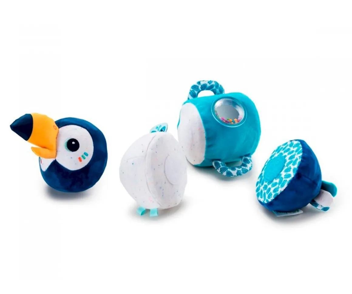 ¡Cuatro sonajeros en uno! Cada parte del cuerpo de colores de Pablo emite un sonido diferente, así que es toda una fuente de descubrimientos que tu pequeño podrá explorar con sus manitas. Además, cada una de las distintas partes se puede quitar fácilmente gracias a sus broches de velcro