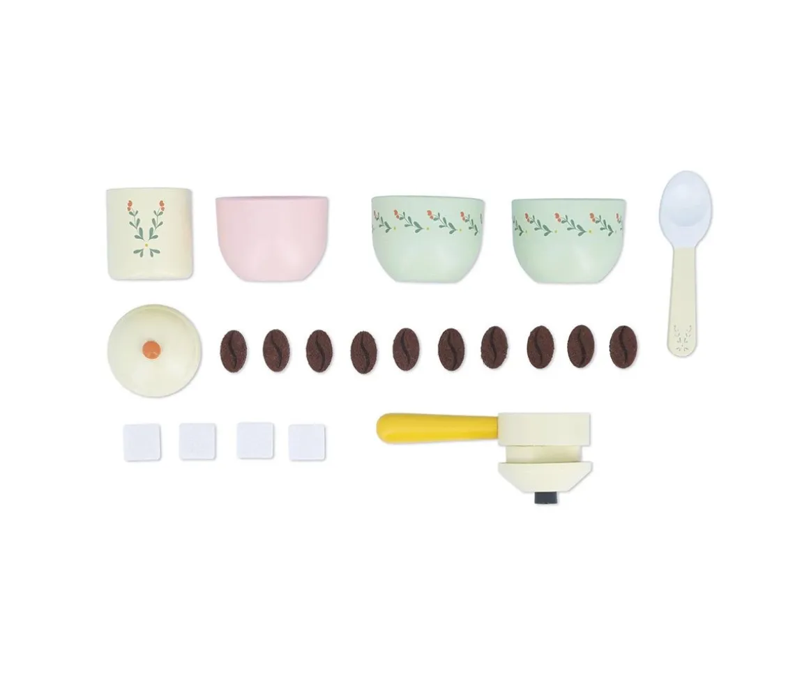 La cafetera de madera con 5 accesorios de la colección Abuelita Alegre será el complemento estupendo para añadir a tu cocinita de juguete y accesorios de cocina.