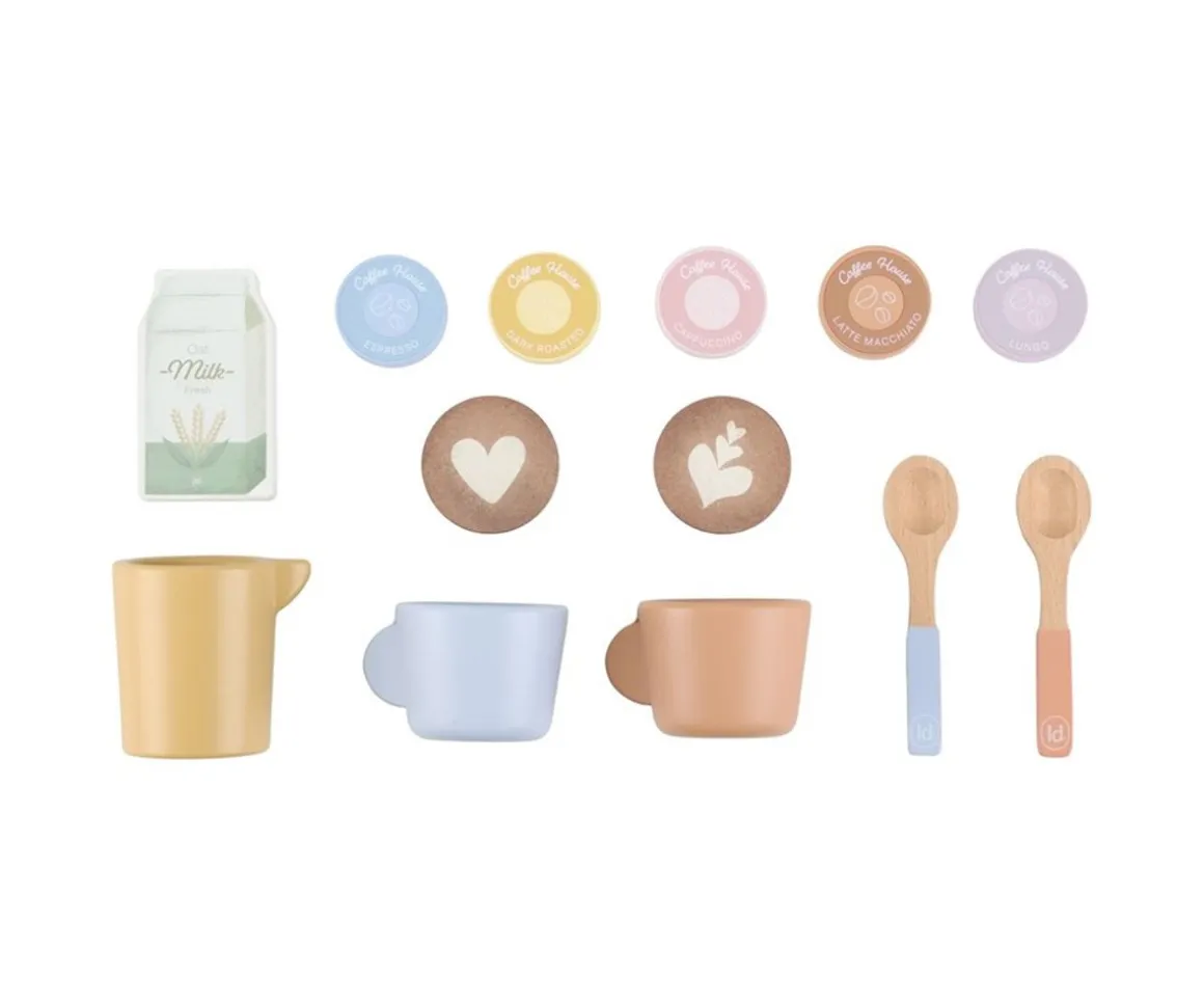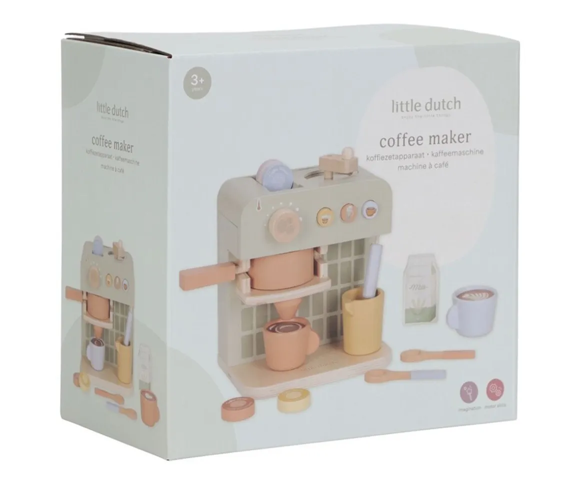 Con la preciosa Cafetera Grande de madera FSC de Little Dutch, los peques se convierten en auténticos baristas. Este completo set permite moler café, insertar cápsulas, remover con cucharitas y hasta servir con leche y espuma. Un imprescindible en cualquier rincón de juegos de cocina o cafetería.