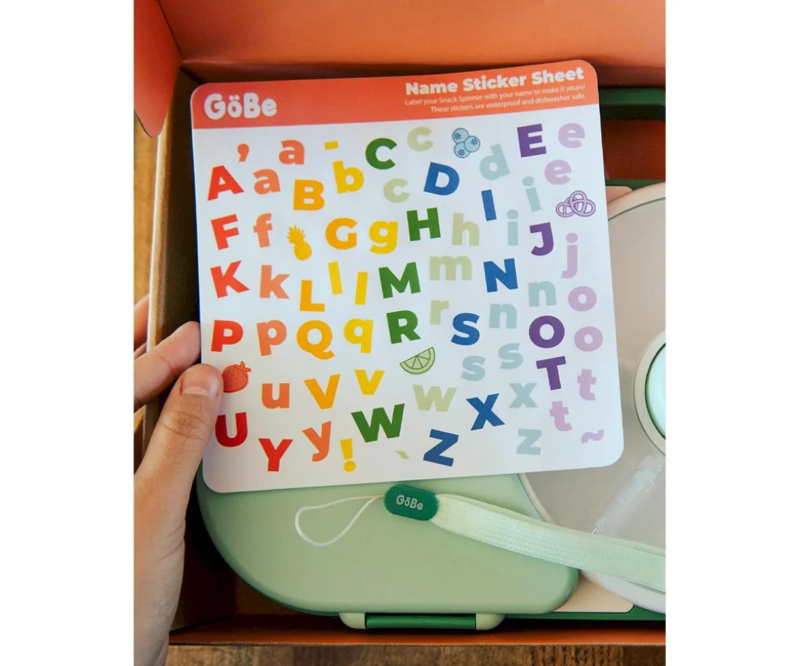 Snack Spinner Slide de la marca GöBe es ideal para llevar una gran variedad de snacks, frutas y verduras, bien organizadas en sus 4 compartimentos.Además incluye una hoja de pegatinas para que puedas personalizarla con el nombre de tu peque.