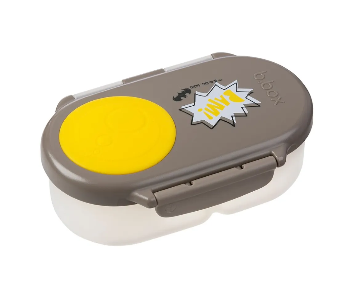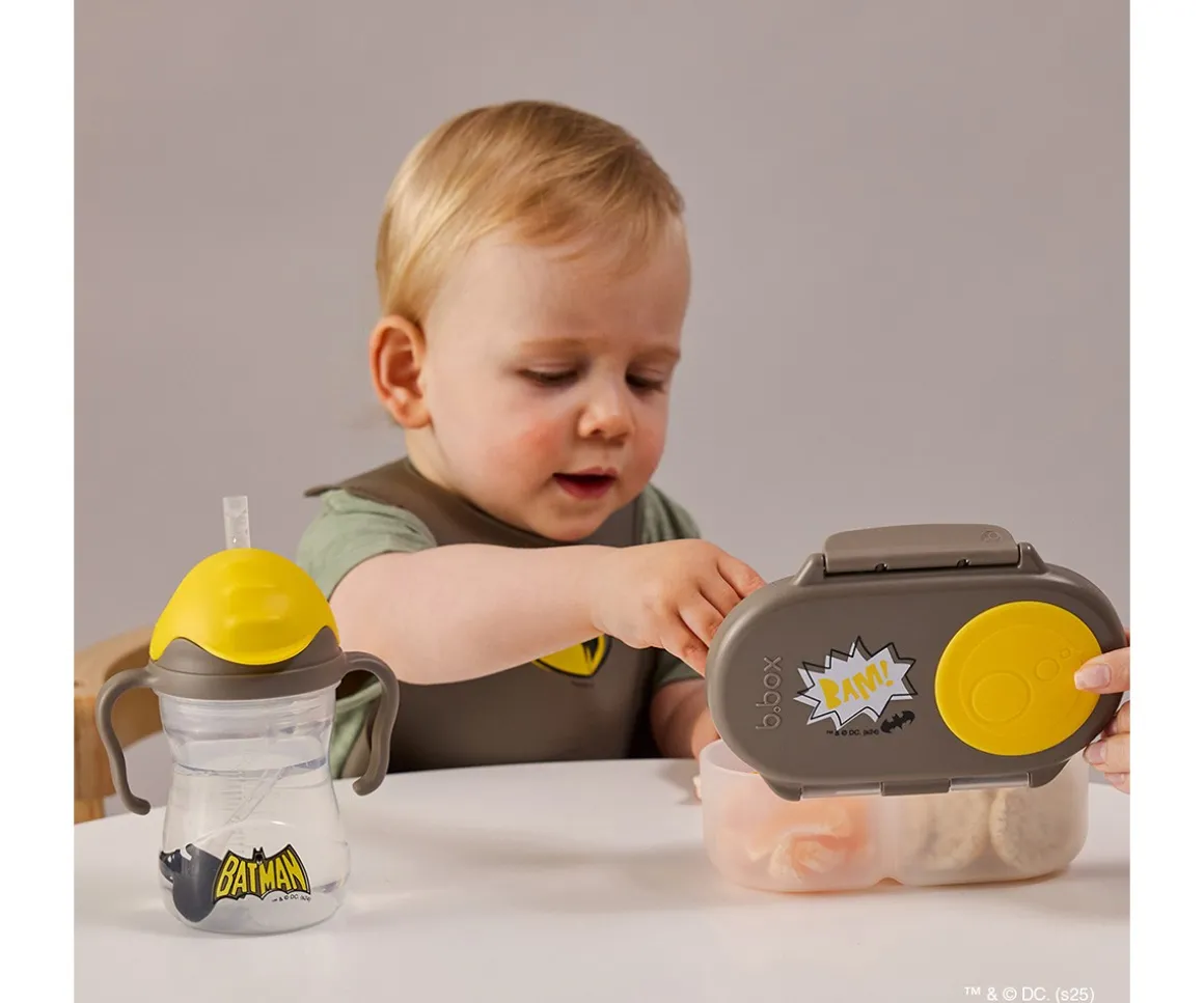 Con la caja almuerzo snack de Edición Limitada Batman de B.Box x Warner Bros, la merienda se vuelve más fácil y práctica. Cuenta con un compartimento flexible que permite llevar frutas enteras sin cortarlas, cómo por ejemplo una manzana. Y su otro compartimento, permite llevar snacks o salsas y yogures, sin preocupaciones.