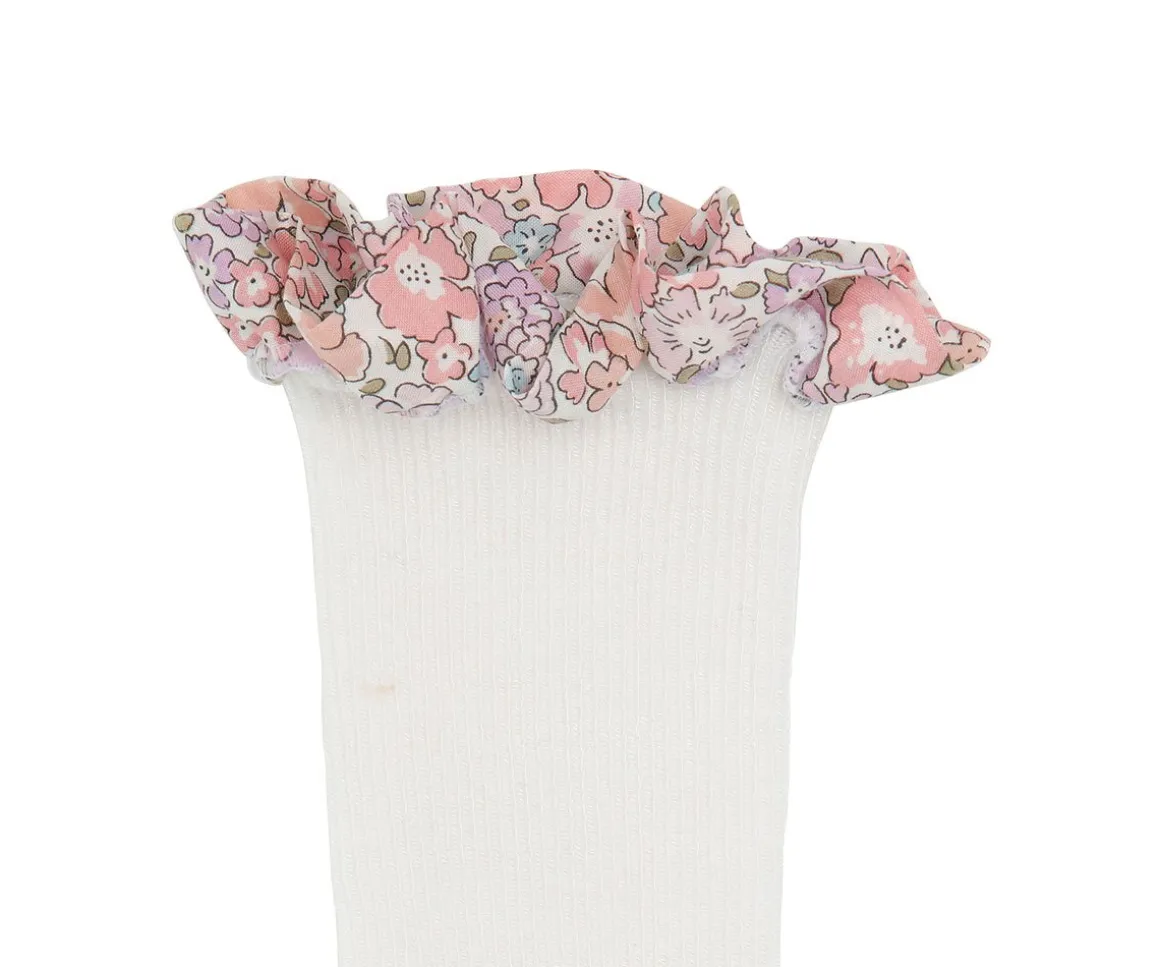 Exclusivos calcetines de bambú con un lindo volante en los conocidos estampados florales de Liberty. Los calcetines se pueden llevar recogidos o doblados para combinar con la ropa.