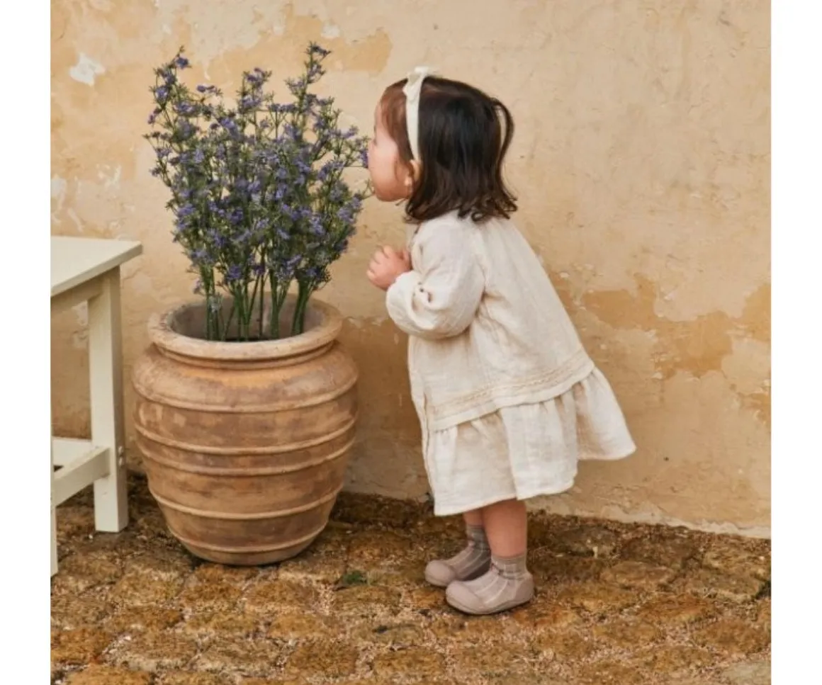 Es un calzado ideal para la fase de gateo y sus primeros pasos, pues ofrece la sensación de andar descalzo y no interfiere en el desarrollo a la vez que protege sus pies.