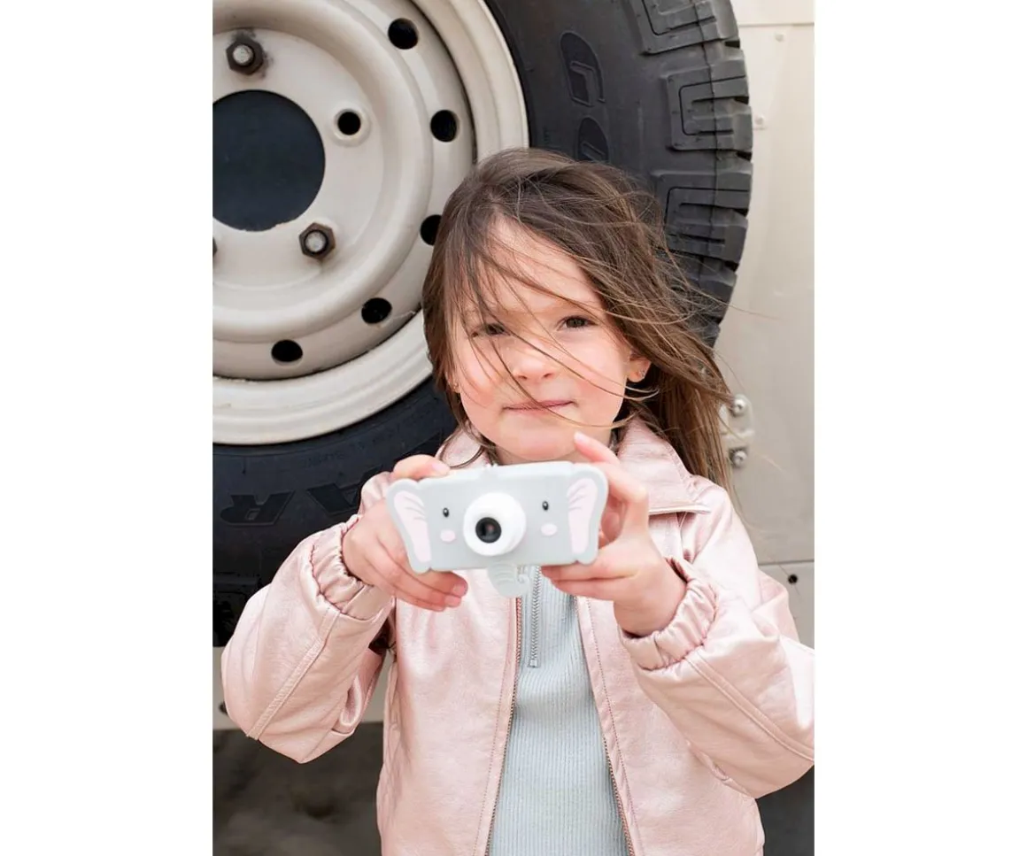 La cámara digital para niños Zoo Friends de The Zoofamily con 32 megapíxeles y grabadora de vídeo, tiene un adorable diseño de elefante. Es pequeña, pesa poco e incluye más de 20 filtros y marcos digitales. La cubierta de silicona es ecológica, protege contra caídas y es fácil de lavar. La batería recargable permite realizar más de 2000 fotos o grabar hasta 4 horas con una carga completa.