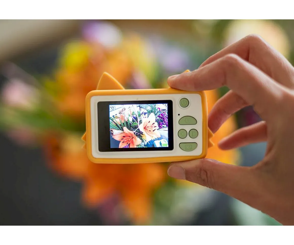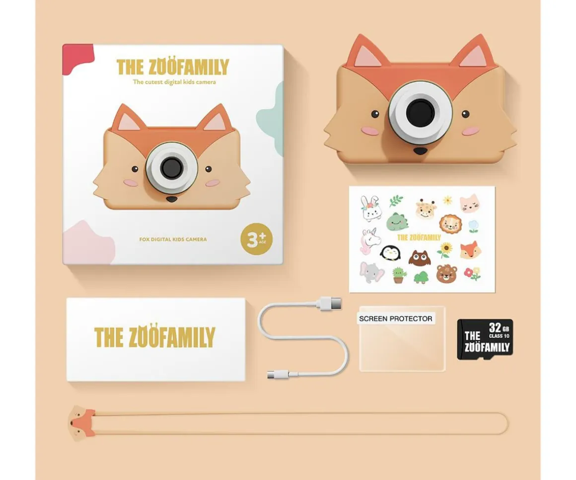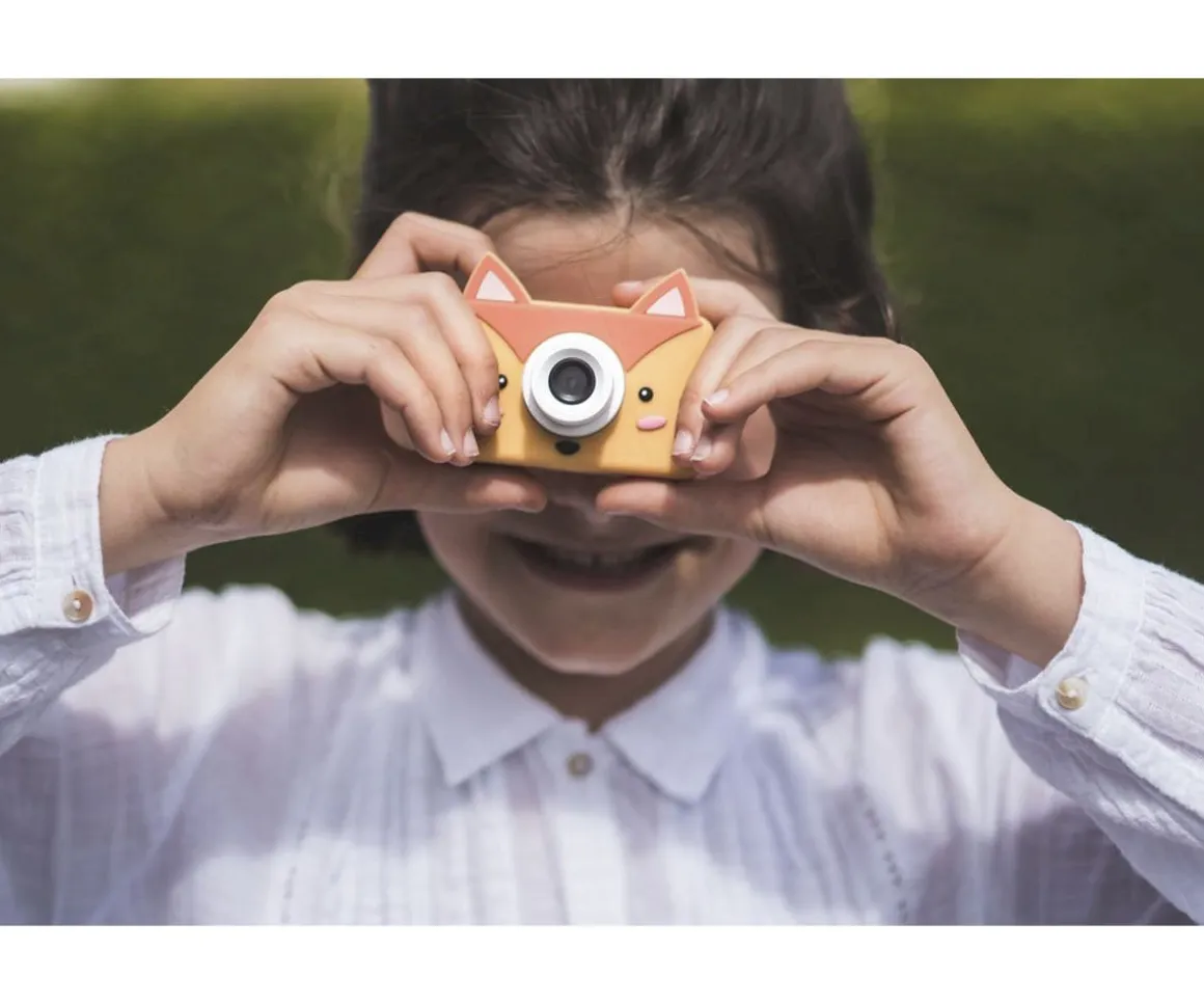 La cámara digital para niños Zoo Friends de The Zoofamily con 32 megapíxeles y grabadora de vídeo, tiene un adorable diseño de uun zorro. Es pequeña, pesa poco e incluye más de 20 filtros y marcos digitales. La cubierta de silicona es ecológica, protege contra caídas y es fácil de lavar. La batería recargable permite realizar más de 2000 fotos o grabar hasta 4 horas con una carga completa.