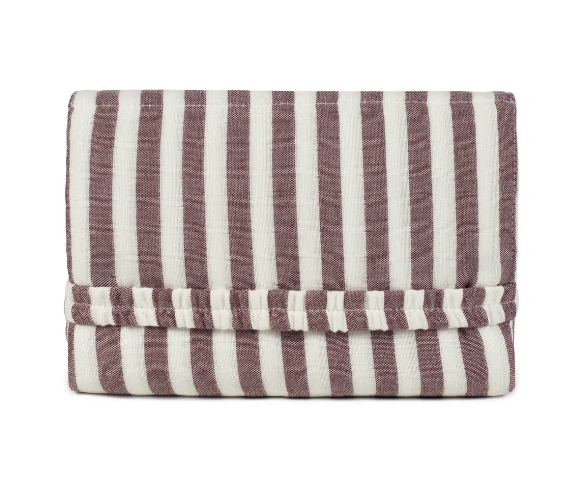 El cambiador de bebé Cherry Rayas de Pasito a Pasito es práctico, elegante y fácil de transportar. Confeccionado en algodón 100% con un delicado tejido de rayas, cuenta con forro interior acolchado e impermeable para mayor comodidad e higiene. Perfecto para llevar en la bolsa de maternidad.