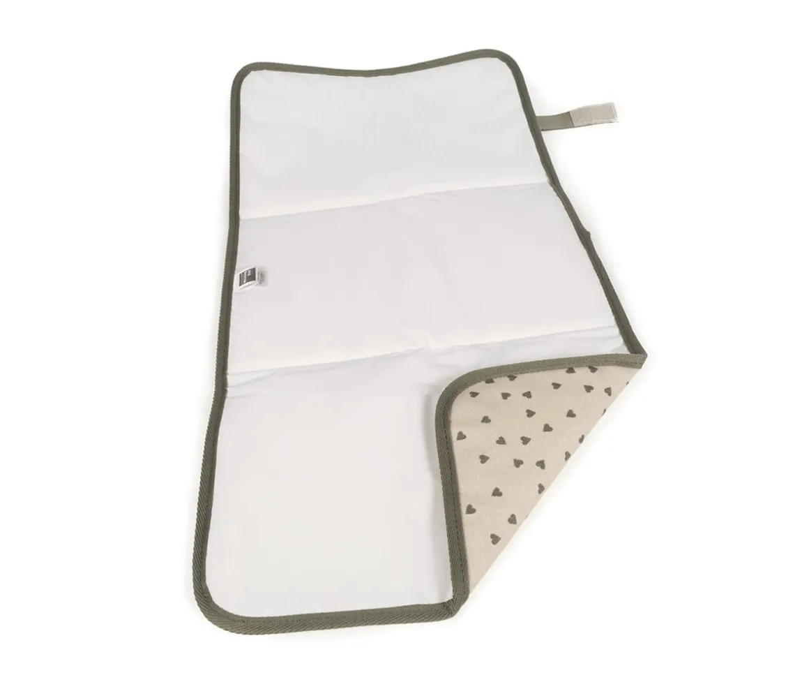 Cambiador de la colección corazones Poppy Moss de Walking Mum fácil de transportar y de plegar con cierre de velcro para cómodo almacenaje.