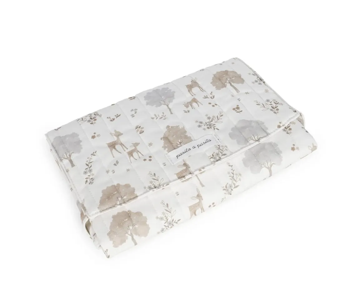 Fabricado en loneta de algodón 100% , este cambiador ofrece un lugar seguro y cómodo para cambiar a tu bebé en cualquier momento y lugar. Su diseño elegante se pliega de forma compacta para facilitar su transporte, con correas de cierre que mantienen todo en su lugar dentro de tu bolsa.