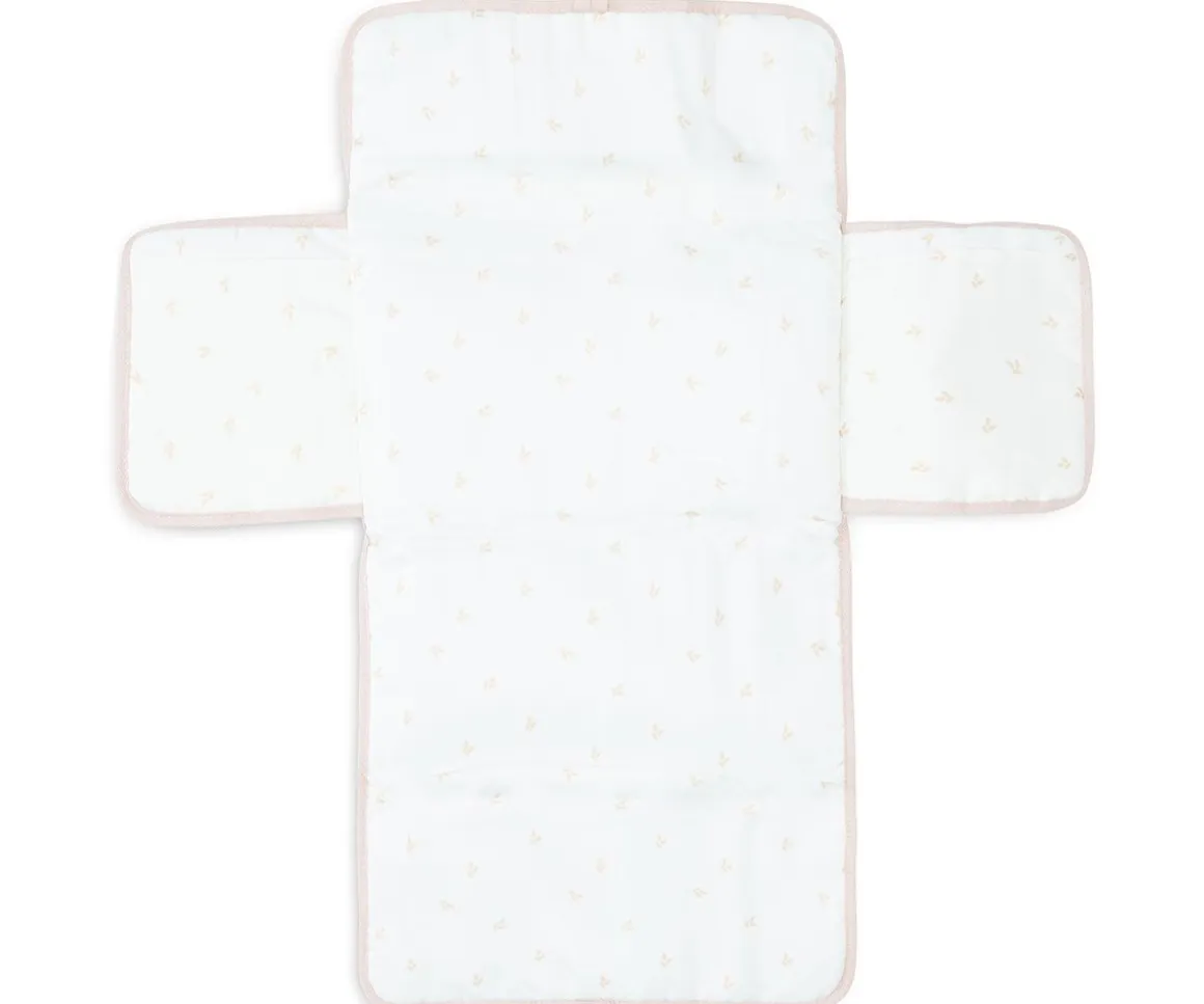Cambiador de muselina compacto y práctico, ideal para llevar en el bolso. Exterior de tejido hidrófilo suave, interior estampado y cierre con lazo.