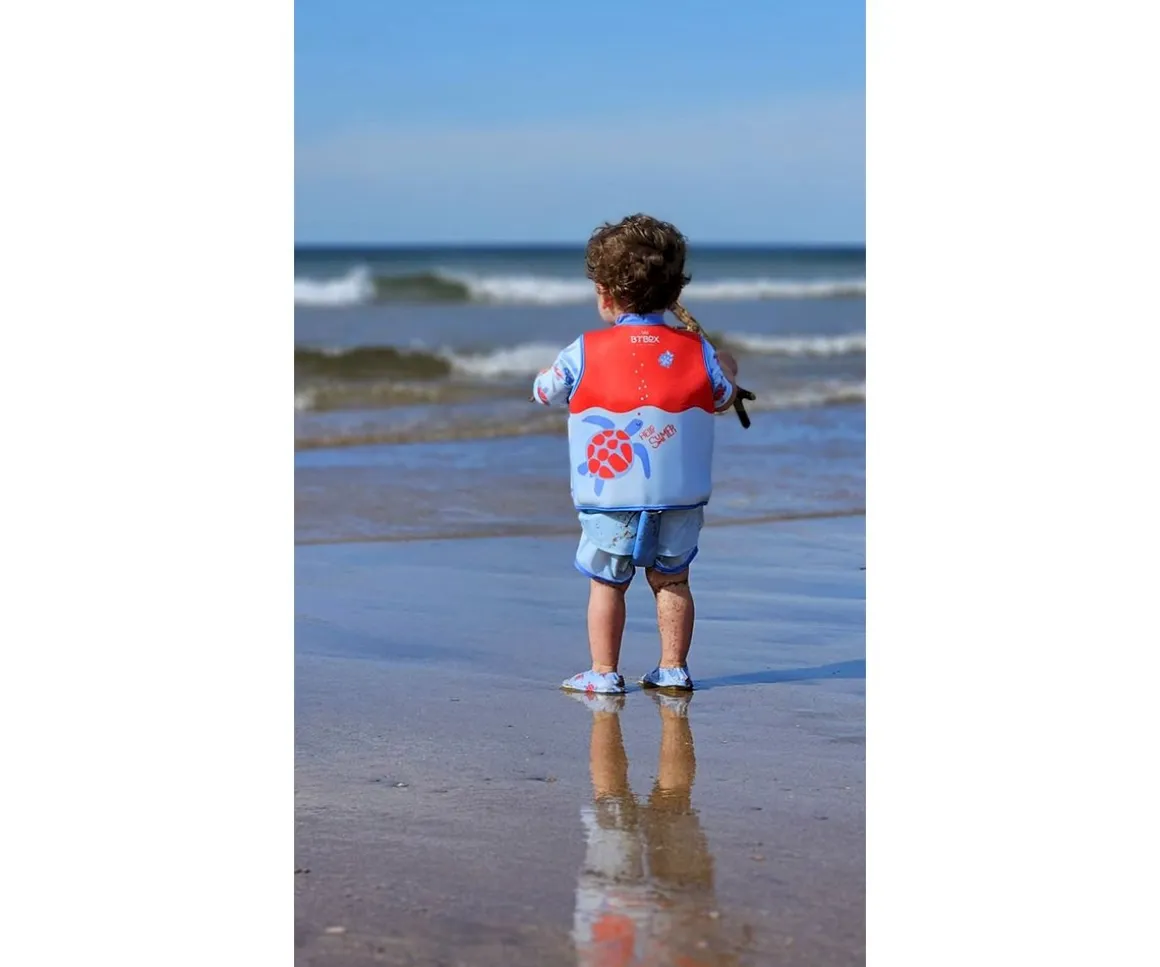 La camiseta bañador Btbox de manga corta, está confeccionada con tela extra suave y elástica, ofreciendo protección solar UPF 50+. Es una opción ideal para combinar con la crema solar y proteger la piel de los niños durante el verano.