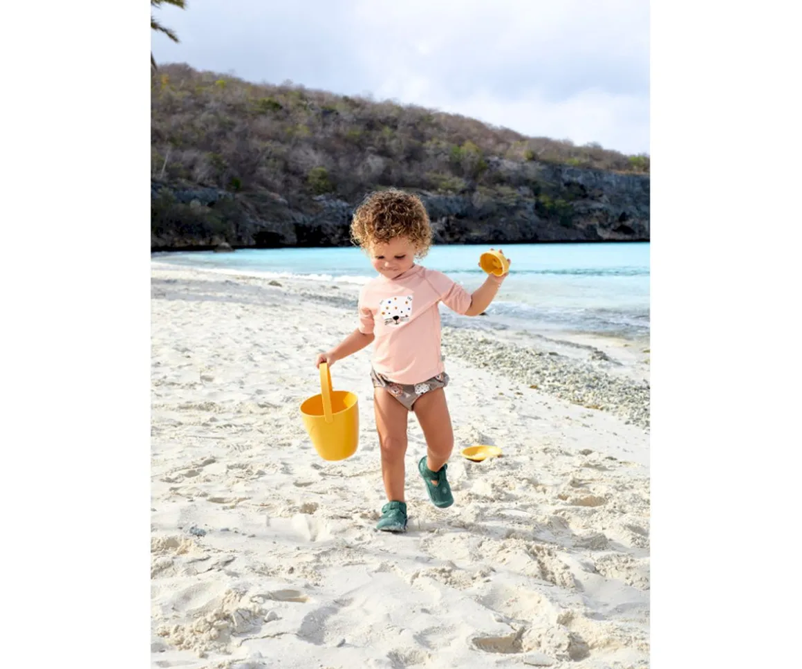 - ATENCIÓN: El uso de esta camiseta no sustituye jamás el uso de crema protectora y se debe de evitar la exposición solar del niño entre las horas en que el sol está en su punto más álgido
