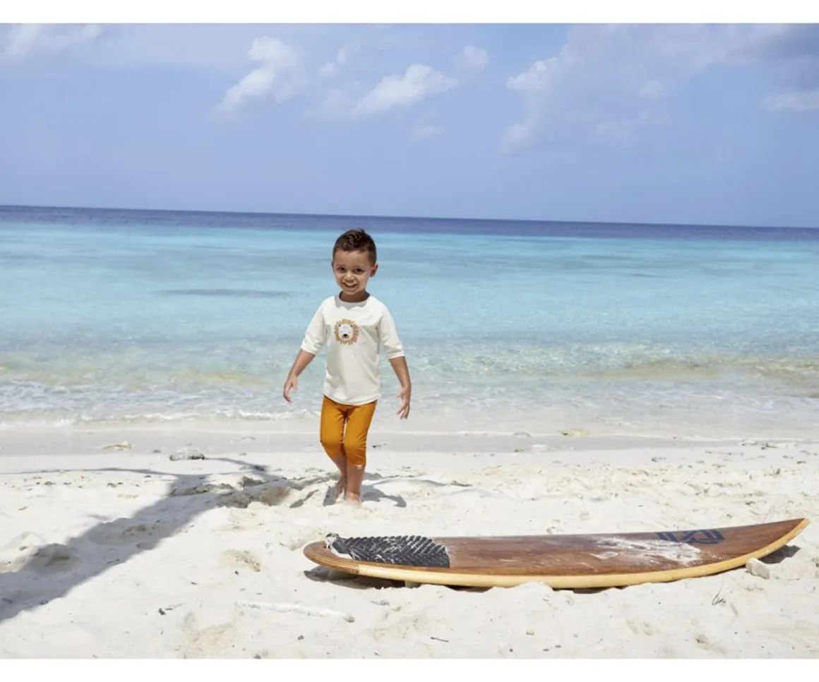 - ATENCIÓN: El uso de esta camiseta no sustituye jamás el uso de crema protectora y se debe de evitar la exposición solar del niño entre las horas en que el sol está en su punto más álgido
