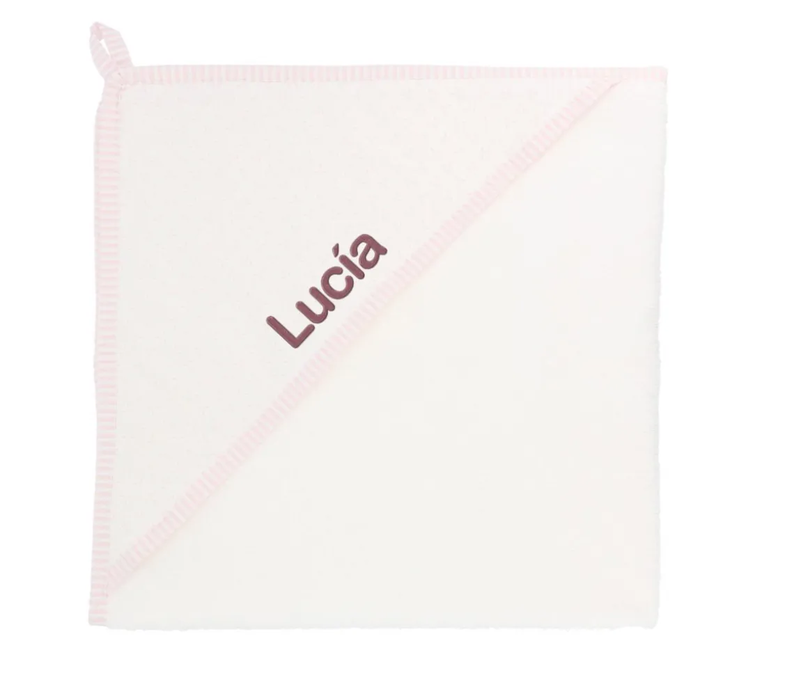Esta capa de baño cuenta con una capucha que podrás personalizar con el nombre de tu bebé para hacerla única y especial. Se confecciona en rizo americano muy suave diseñada especialmente para Tutete.