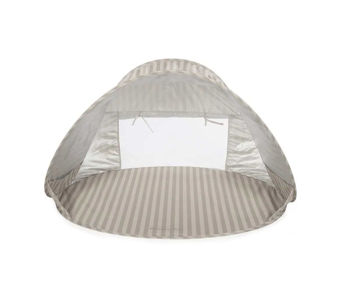 Esta bonita carpa de playa con protección UV50+ de la colección de Walking Mum, con diseño de un adorable perrito y estampado a rayas, es ideal para los días de playa.