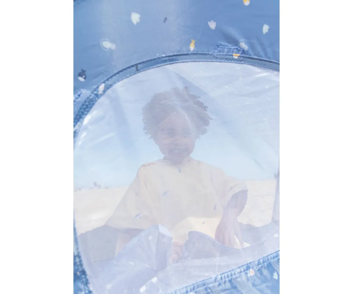 Práctica carpa pop-up de la colección Fishes, perfecto para que los peques disfruten de días de playa, piscina o campo protegidos de los rayos solares. Es muy fácil de instalar y transportar y cuenta con protección 50+UPF.