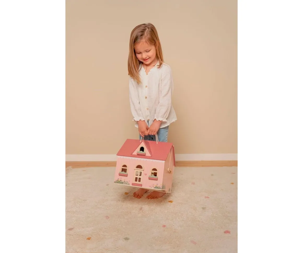 Esta preciosa casa de muñecas rosa con originales detalles es estupenda para que te diviertas jugando con ella en cualquier parte. La casita cuenta con una sala de estar, una cocina, una habitación y un baño. Se abre y se cierra fácilmente y puedes transportarla con las asas que incluye en el tejado.