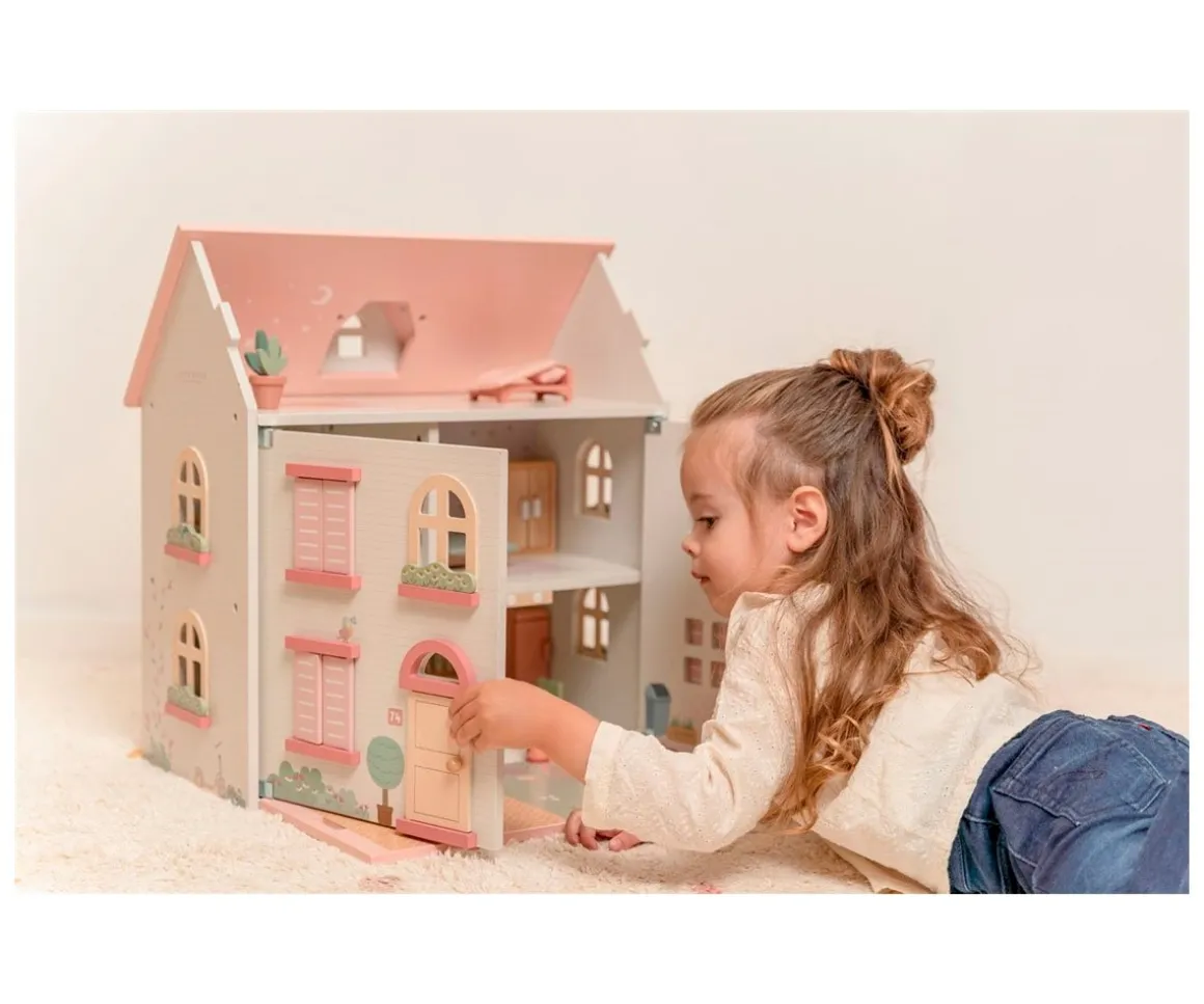 La preciosa casa de muñecas de madera de Little Dutch es estupenda para que los peques den rienda suelta a su imaginación. Incluye persianas de madera que pueden abrirse y cerrarse, el tejado puede ser abierto y transformarse en un jardín.