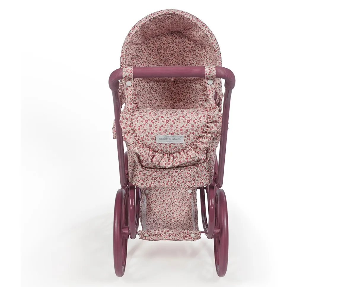 Pasea con tu primer cochecito para muñecas de Pasito a Pasito, perfecto para muñecas de 30 a 42 cm, este cochecito tiene el estampado de la colección Cherry Flores e incluye bolso y cesta en la parte inferior para llevar todos los accesorios de las muñecas.