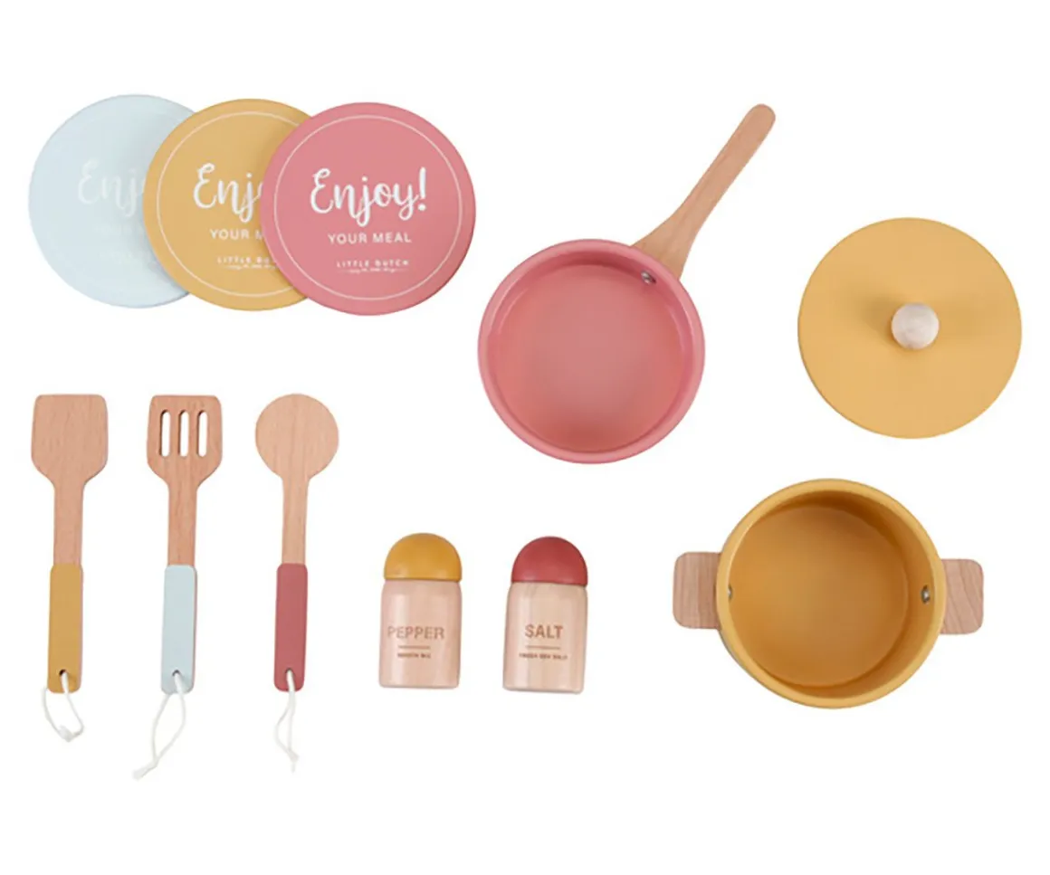 - Utensilios incluidos: Salero, pimentero, manopla, cazuela, sartén, cucharones…
