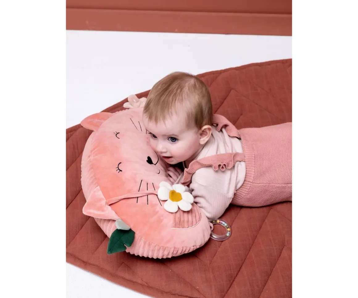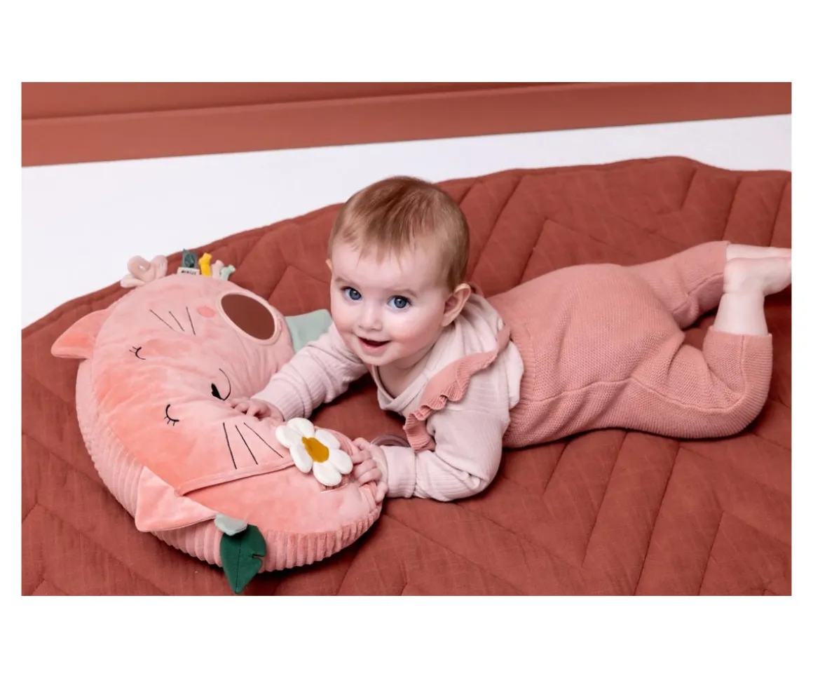 Un cojín muy alegre y lleno de actividades en el que tu peque lo pasará en grande jugando boca abajo al tiempo que fortalece el cuello y la espalda.