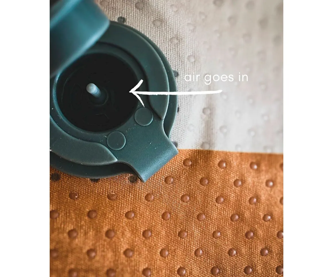 El cinturón elástico y los puntos de silicona antideslizantes de la parte de abajo ayudan a que el cojín permanezca fijo en cualquier silla. Es muy fácil de inflar y desinflar lo que lo hace práctico y perfecto para llevar a cualquier parte.