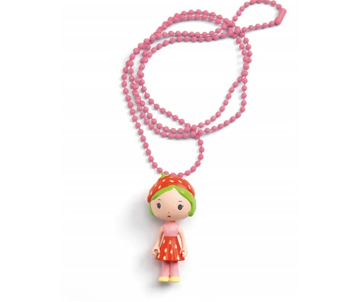 Elegante collar que representa la figurita de Tinyly Berry, finamente esculpida en una cadena de metal de color rosa que se puede ajustar.
