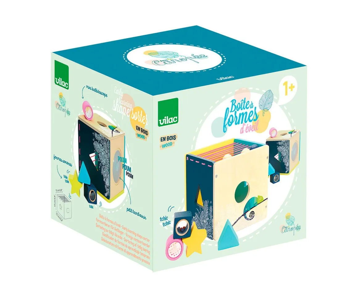 - Incluye: 1 cubo de madera, 4 piezas de diferentes formas