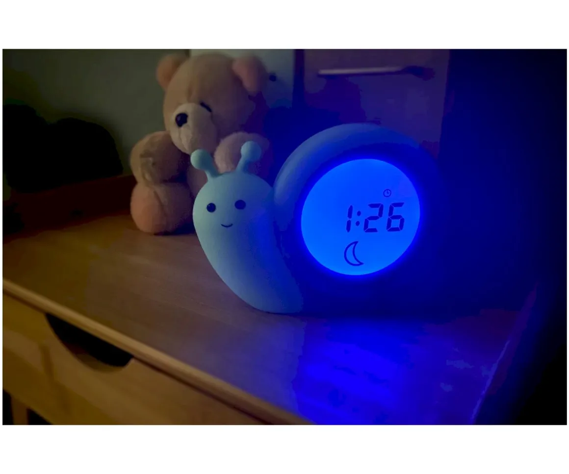 El caracol Simon de Alecto, es un entrenador de sueño 3 en 1, despertador digital y luz de noche/día con un bonito diseño de un simpático caracol.