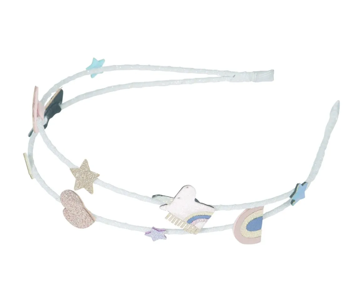 Esta preciosa diadema doble tiene dos filas decoradas con arcoíris,estrellas y unicornio brillantes. ¡Una diadema original y divertida, perfecta para tu look del día!