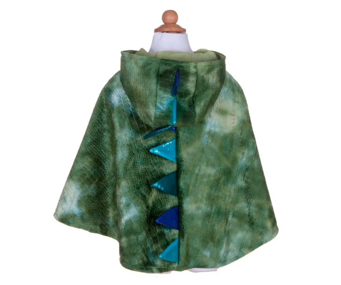 Este bonito disfraz capa de dragón está hecha de suave terciopelo triturado con varios tonos de verde. Los picos están forrados con espuma.