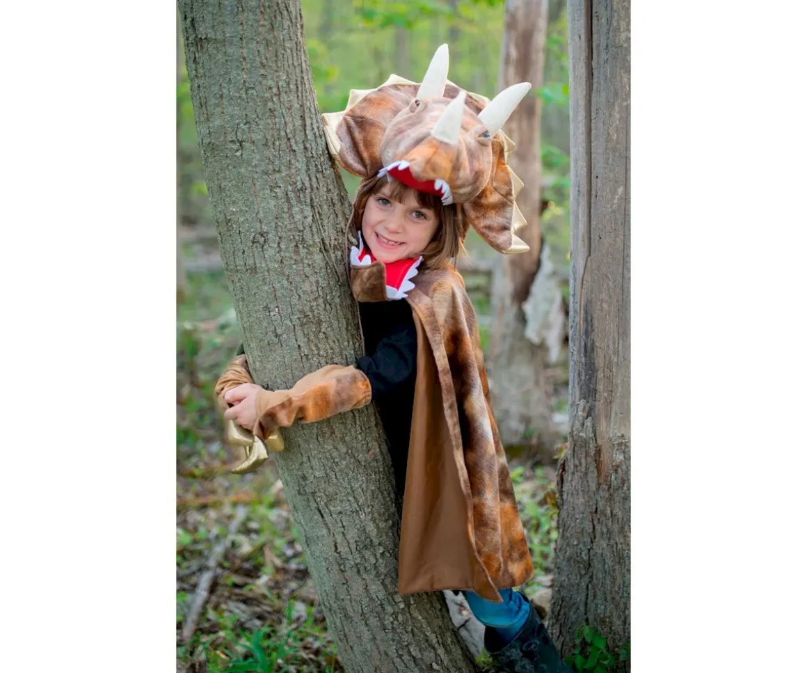 A los peques le encantará esta capa de dinosaurio totalmente monstruosa. Esta teñida a mano en marrón, gris y naranja con forro rojo y marrón.