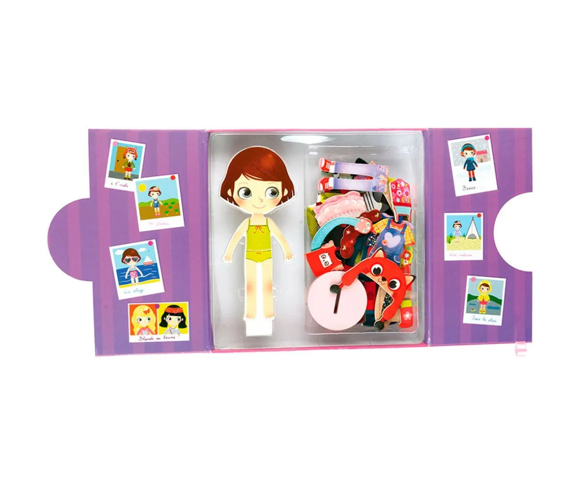 Pásalo en grande vistiendo a Chloe como más te guste. Los peques podrán realizar sus propias creaciones de moda con este juego de madera magnético.