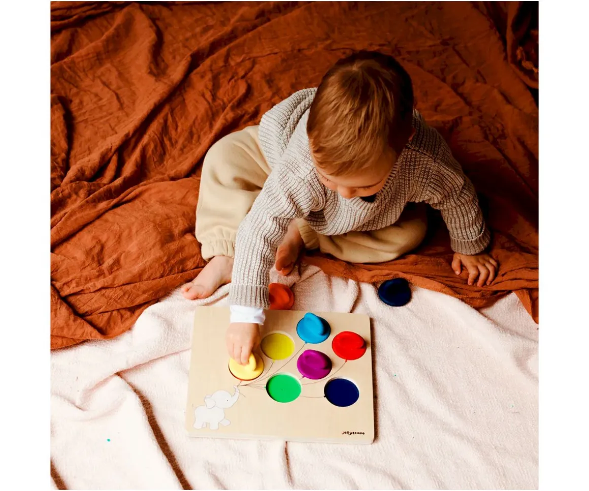 Los peques podrán desarrollar su reconocimiento de los colores haciendo coincidir las tapas de silicona con el globo de color correspondiente.