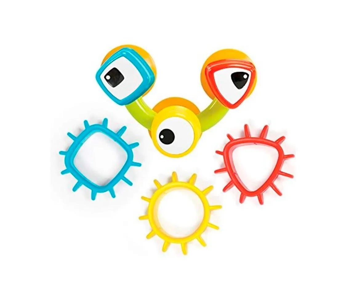 Este juguete con formas de colores encajables y tubos de ensayo para jugar durante la hora del baño se adhiere a la bañera de forma sencilla. Los peques podrán colocar los engranajes según su forma y color, verter agua sobre el mecanismo y verlo girar. Un accesorio que hará aún más divertida la hora del baño de los más peques.