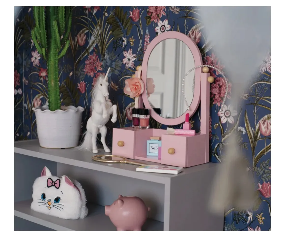 El Espejo Tocador de Jabadabado es el complemento perfecto para inspirar horas de juego simbólico lleno de imaginación y ternura. Fabricado en madera certificada FSC y pintado en un encantador tono rosa suave, este espejo de mesa combina diseño decorativo con funcionalidad, ideal para habitaciones infantiles o zonas de juego.