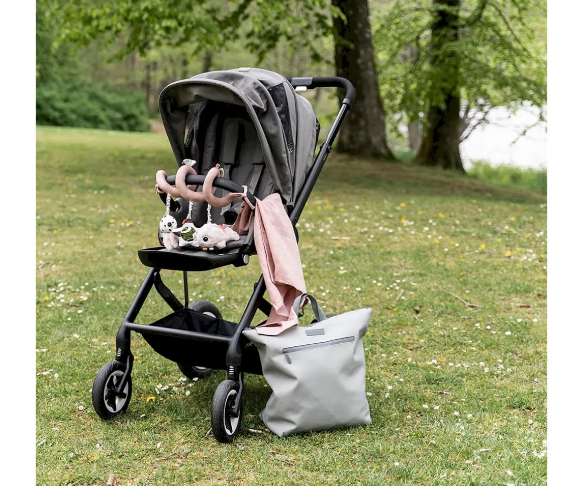 Espiral flexible que puedes sujetar a la cuna, asiento del coche, cochecito o en el lado del parque de juegos. Podrá interactuar y descubrir los sonidos con la bonita medusa Jelly, la dulce ballena Wally y con el divertido espejito en forma de estrella.