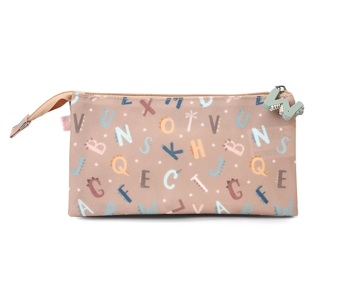 Estuche Escolar de 3 Compartimentos Personalizado de la Colección Vuelta al Cole Funny Letters de Tutete.