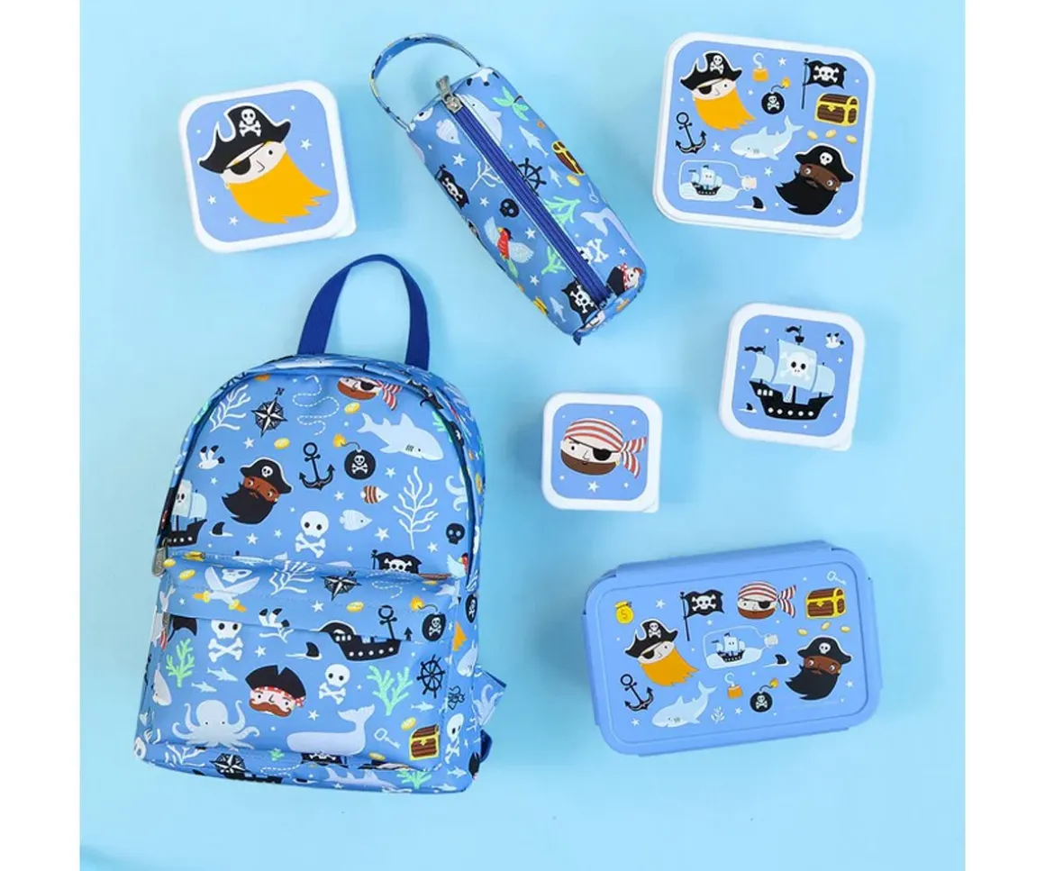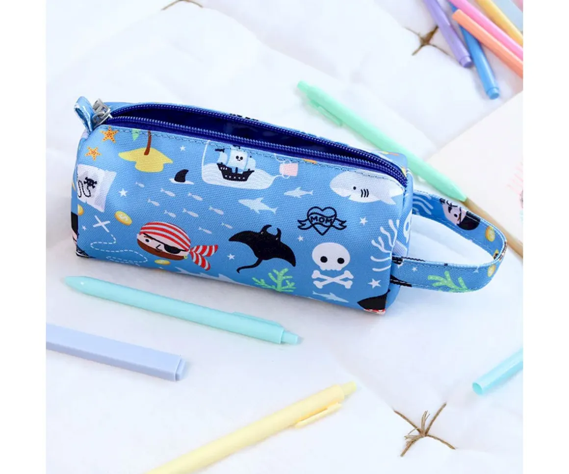 Precioso estuche inspirado en el mundo pirata para que los peques mantengan todos sus lápices seguros en un solo lugar. Está forrado por dentro, cuenta con una cremallera en la parte superior y una práctica correa para transportarlo