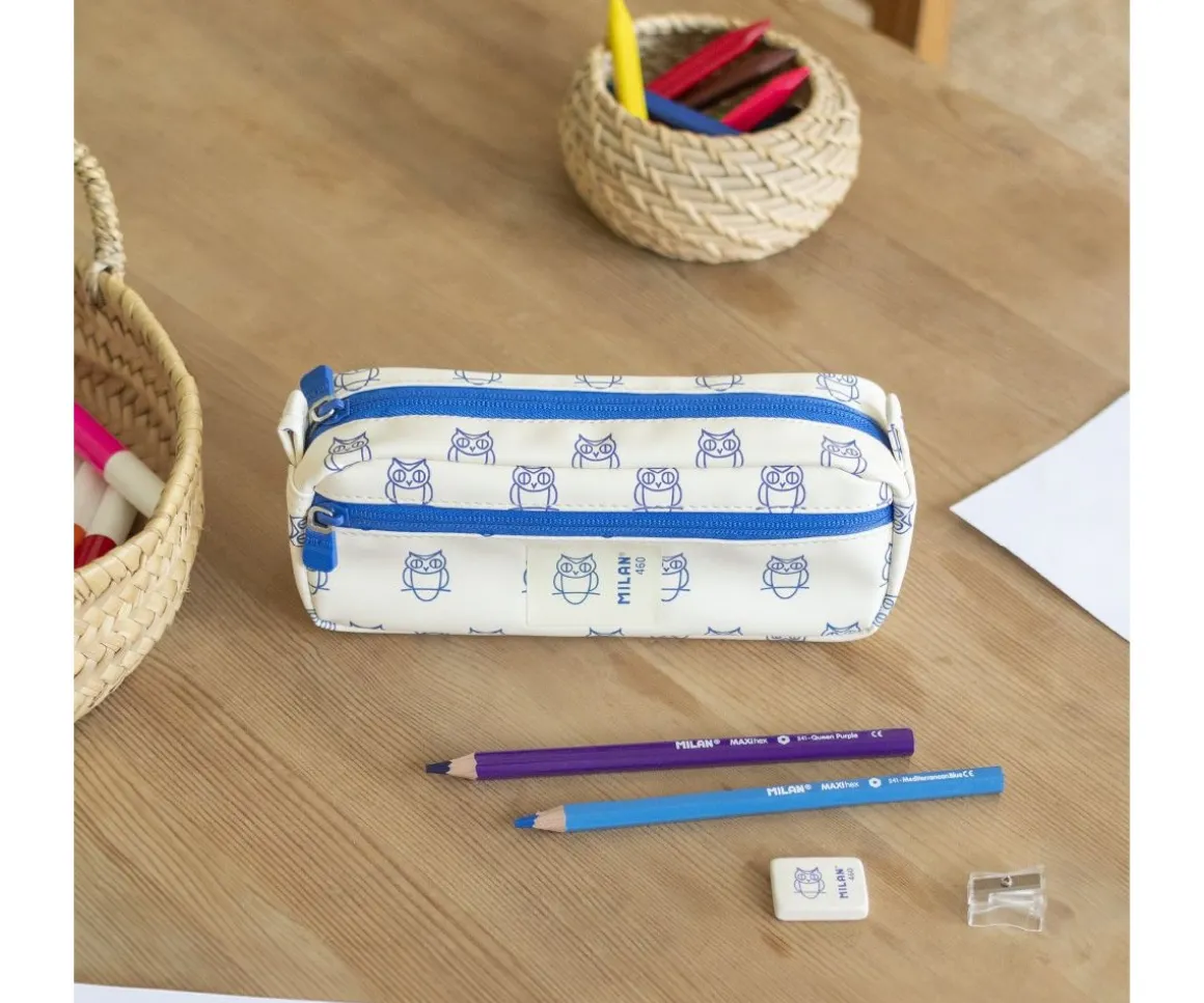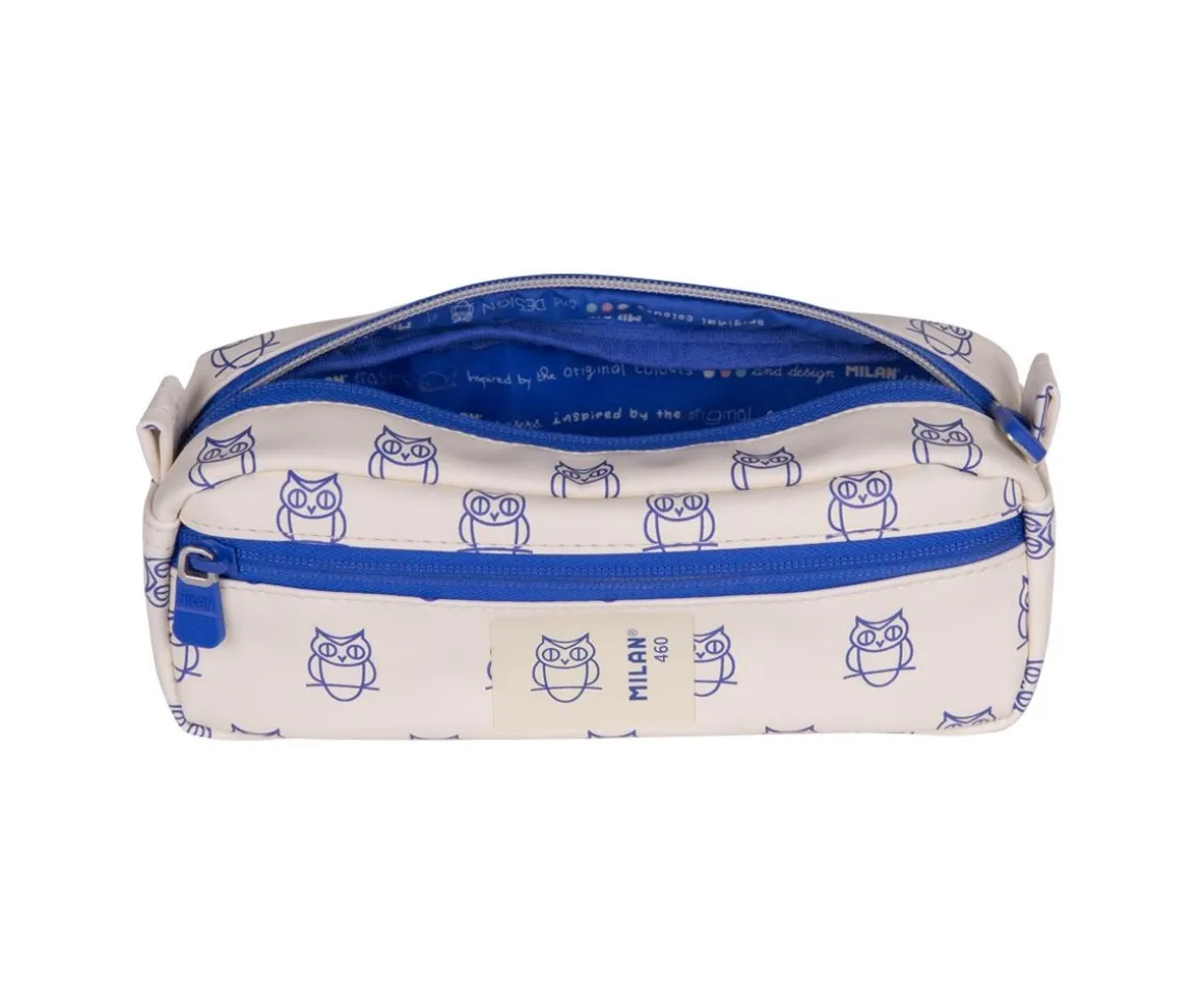 Estuche rectangular de la colección 460 Since 1918 de MILAN perfecto para acompañar a los peques en su día a día escolar.Incluye dos compartimentos con cremallera azul, uno principal y un práctico bolsillo frontal, ideales para mantener lápices, bolígrafos, gomas y pequeños accesorios bien organizados.