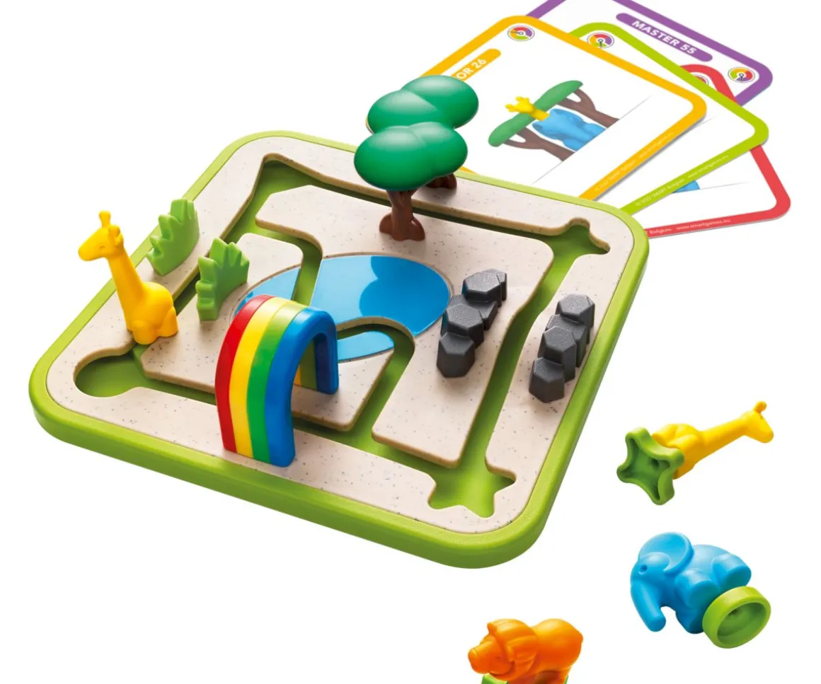 - Incluye: 1 tablero, 2 jirafas, 1 elefante, 1 león y un libro con 60 desafíos