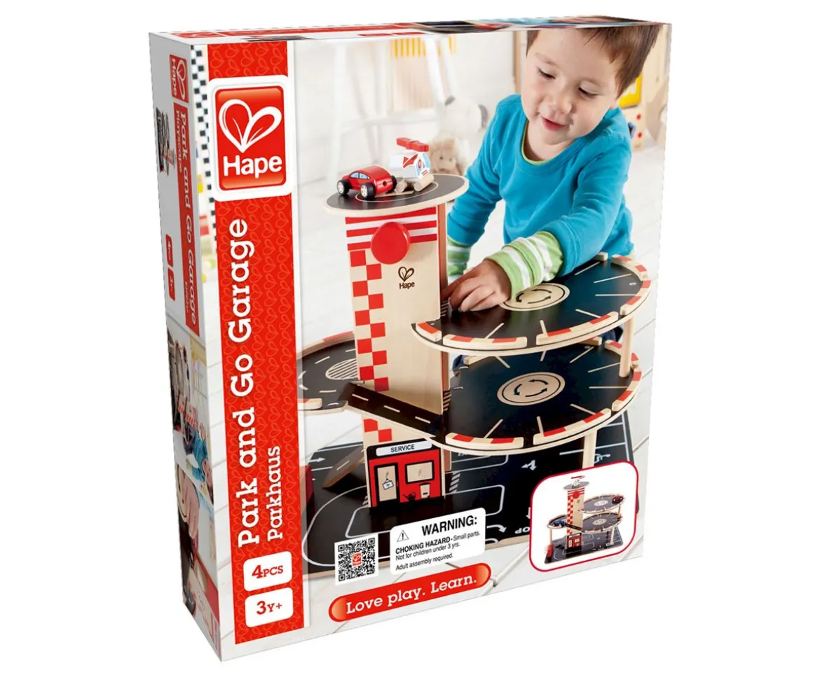 Con cuatro niveles de aparcamiento, surtidores de gasolina y una plataforma de aterrizaje para helicópteros, este parking está perfectamente preparado para el ajetreado ir y venir de los pequeños conductores.