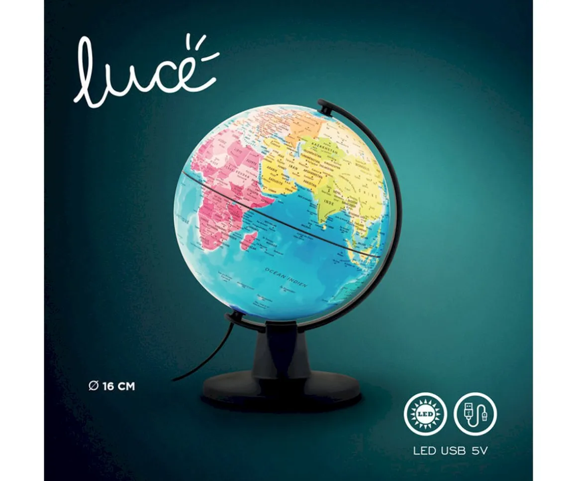 El pequeño globo terrestre de la colección Luce de Tecnodidattica es ideal para iniciar a los peques en la curiosidad por explorar la geofrafía de todo el mundo.