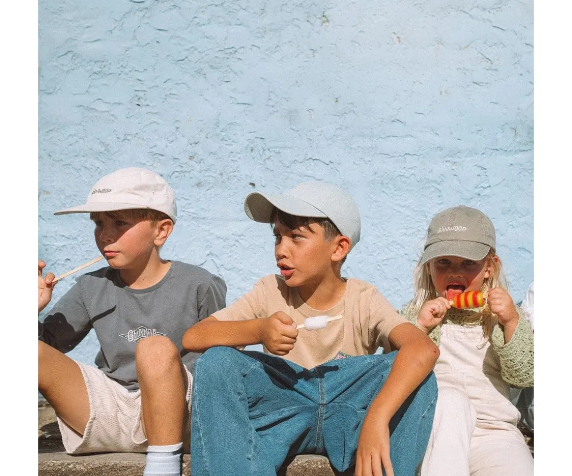 Descubre las originales gorras de 5 paneles fabricadas en sarga de algodón de Banwood. Cuentan con el logo de la marca bordado en la parte frontal que le aporta un look vintage, visera recta y correa ajustable con hebilla metálica en la parte trasera.Ideales para que los peques se protejan del sol a la última moda durante los día soleados de verano.