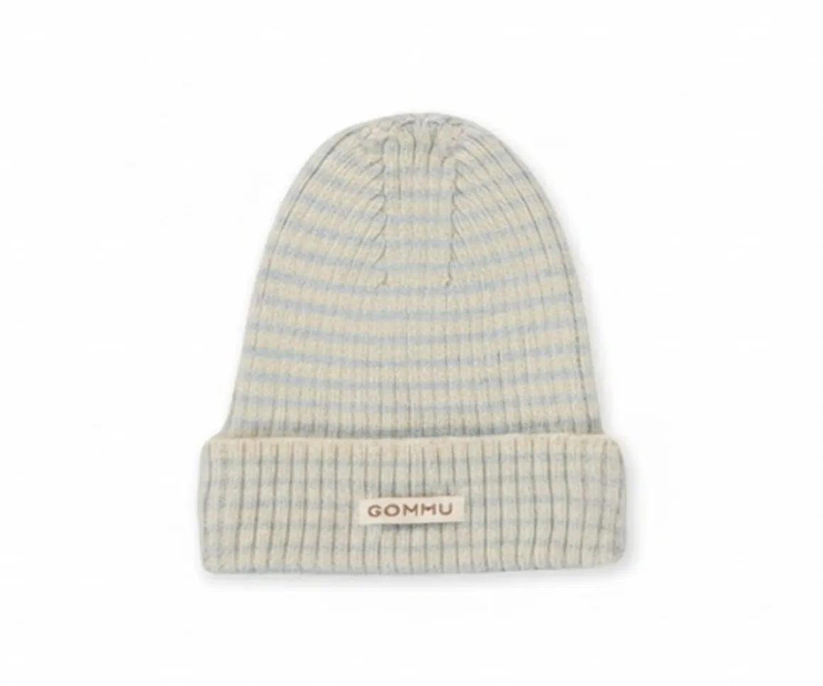 Este encantador gorro Gommu, con su diseño de rayas francesas en azul cielo y arena, está confeccionado íntegramente en algodón. Ha sido creado para adaptarse cómodamente tanto a los muñecos Baby Gommu.