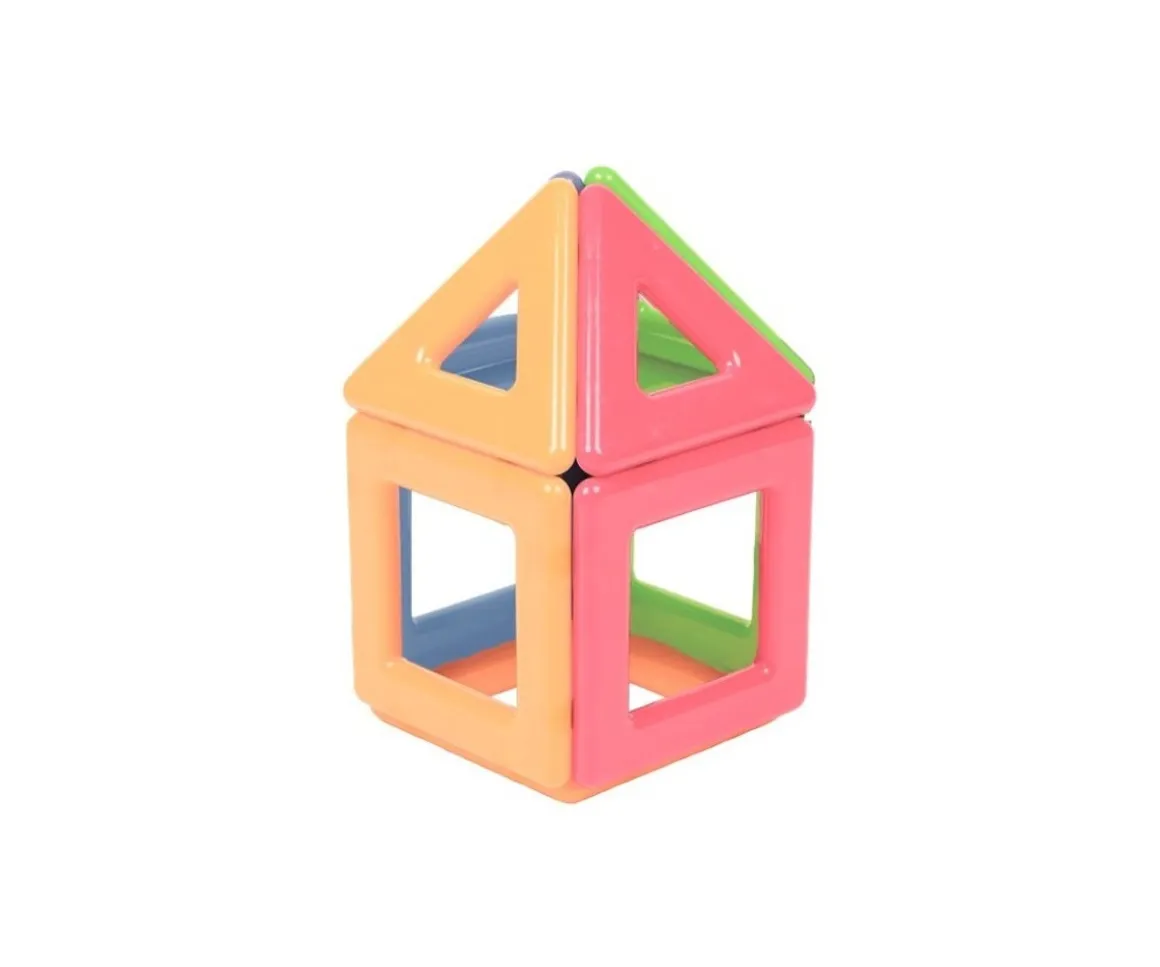 El set de 9 piezas geométricadas imantadas, con forma de triángulos y cuadrados huecos, es ideal para que los peques a partir de 24 meses puedan manipularlas fácilmente y fabricar sus primeras construcciones en 2D y 3D.