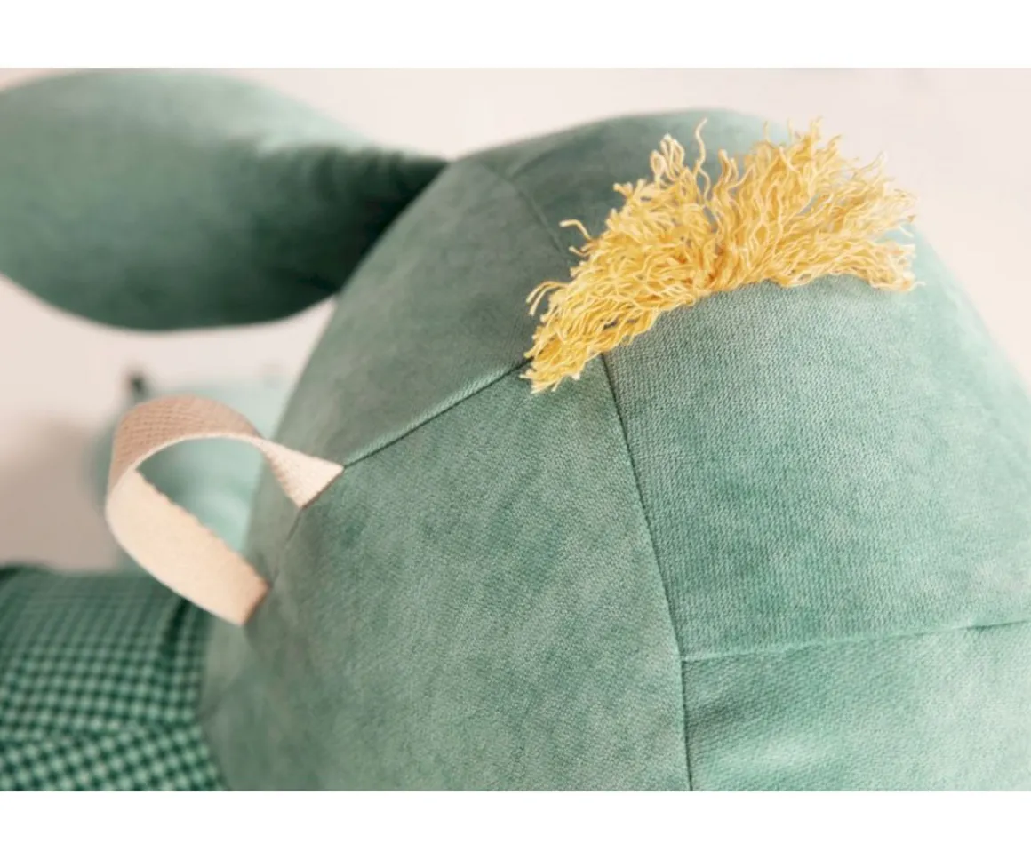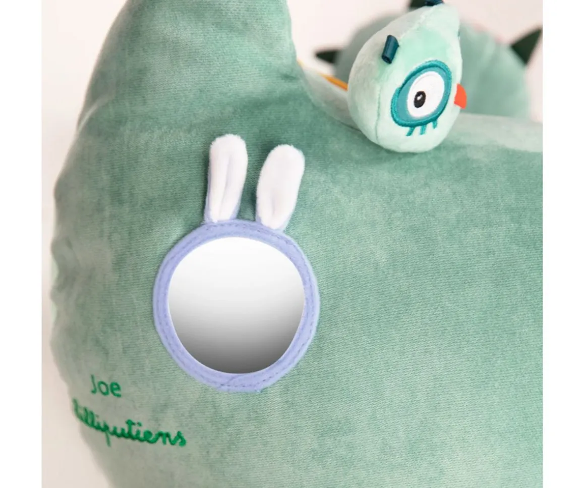 Además, Joe está lleno de actividades que fomentan el aprendizaje, como un sonajero en su pata, papel crujiente en las orejas, un bolsillo lateral con forma de estrella y un espejito sensorial. Su amigo el búho, emite sonidos y se desmonta con velcro. Gracias a su asa de tela, ¡Joe puede acompañar a los peques a todas partes!