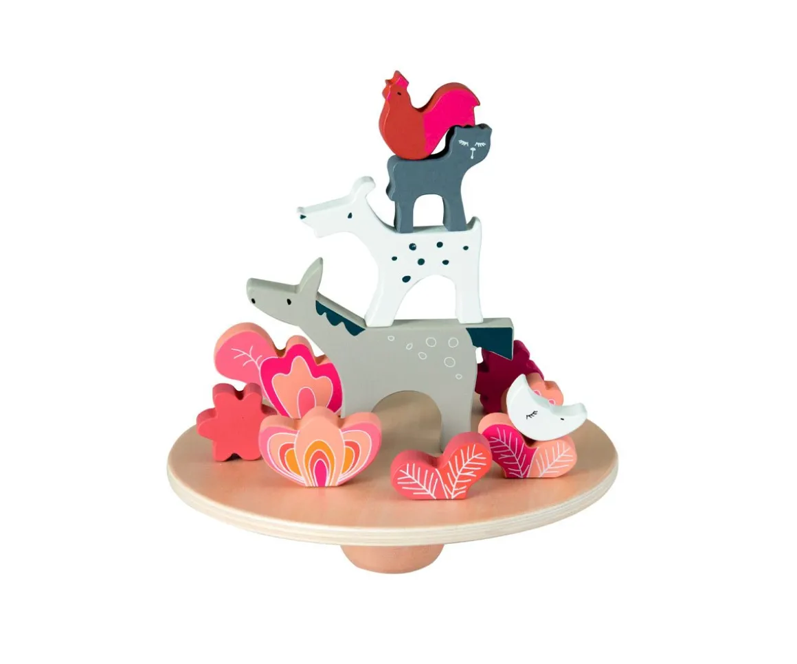 Los peques deberán colocar el disco en la base redonda y encima apilar las piezas de los diferentes músicos de Bremen. Un divertido juego de equilibrio y destreza con el que los peques pasarán grandes momentos de diversión.