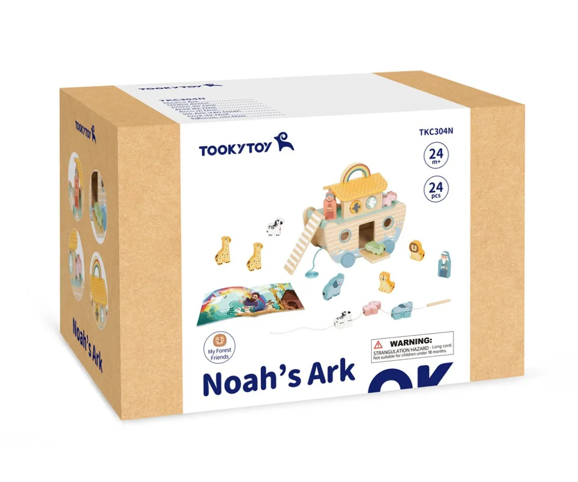 Pasea a todos los animalitos en este adorable Arca de Noé de madera con ruedas por todos los rincones de tu hogar. Además a los animalitos les encantará que los subas y bajes, que los emparejes y encajes las piezas encajables y mucho más que puedas imaginar.