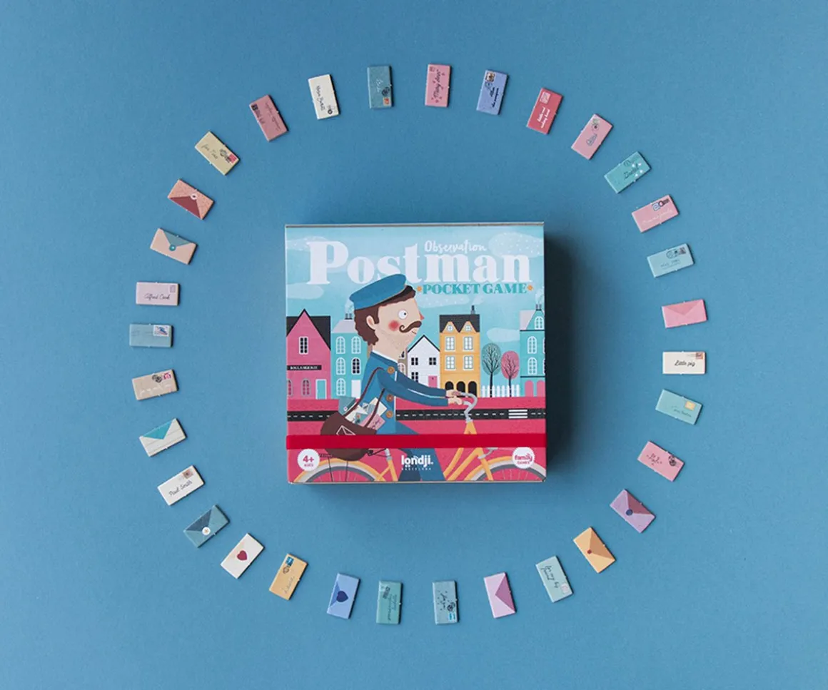 - Incluye: 60 tarjetas con imágenes para buscar, 6 piezas de puzzle, 32 cartas de cartero